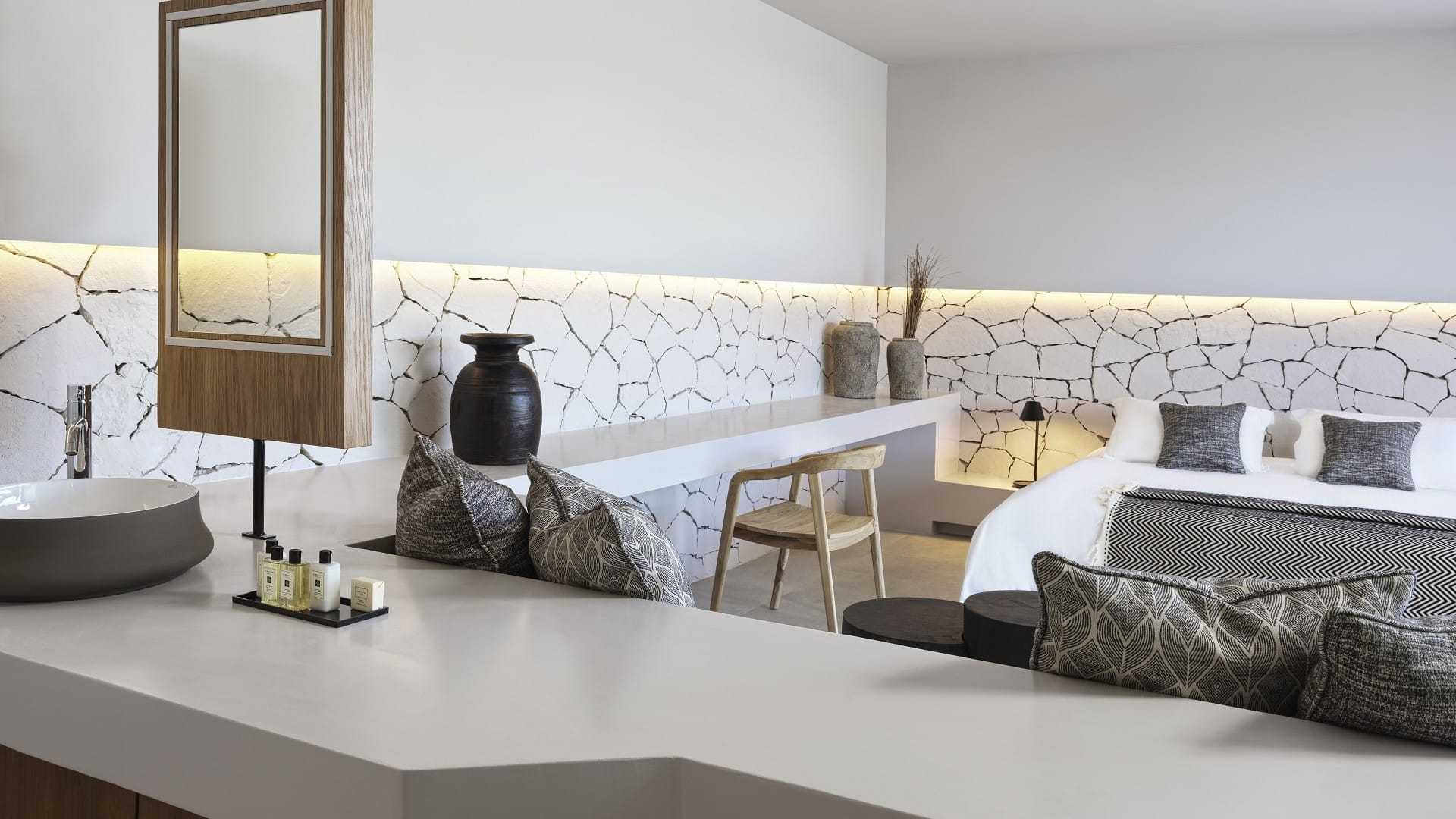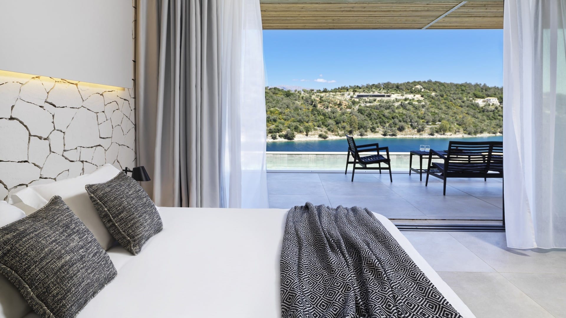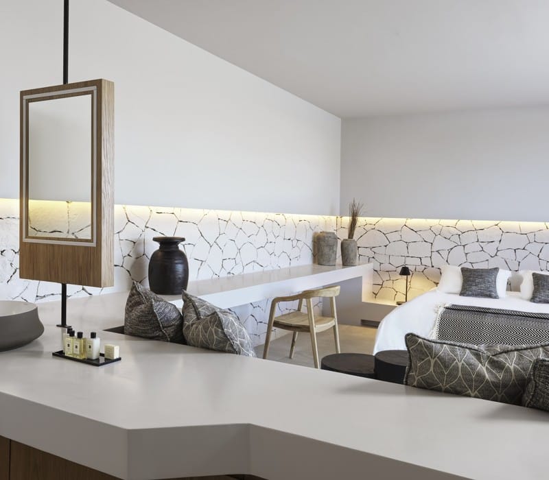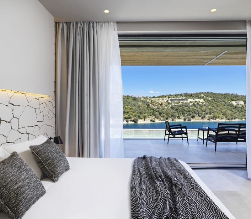 Inspired by their breathtaking surroundings, these suites trigger a wow effect with their modern sophisticated design and cozy environs. Spreading over an area of 32-39 square meters, the Extreme Wow Suites allow guests to relax in beautifully appointed living spaces, step outside to their own private terrace and immerse in the tranquil waters of their large pool while taking in the vistas of the pacifying Ionian Sea.